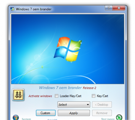 Активатор для Windows 7. Кроме выбора типа активации (Loader/Key/Cert или только Key/Cert) имеется возможность выбора и установки ОЕМ логотипов: в экране приветствия, свойствах системы и рисунке учётной записи. Эмулятор(лоадер) загружается до старта загрузчика Windows и создаёт для системы видимость SLIC2.1. При выборе Key/Cert - эмулятор не устанавливается (только ключ и сертификат). Активирует Retail версии, но после активации становится OEM - версией.