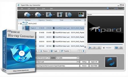 Tipard Blu-ray Converter - конвертер-граббер видео BD DVD (Blu-Ray) в другие популярные видео форматы, поддержка MPG, MPEG, MPEG2, SWF, FLV, VOB, MOD, MP4, H.264, M4V, AVI, WMV, 3GP, 3GPP, MOV , DivX, XviD, Quciktime видео, DV, MJPG, MJPEG, MPV и т.д.Программа также поддерживает High Definition видео файлы, такие как TS, M2TS, TP, HD MPEG 2, HD MEG4, WMV HD, HD MOV, H.264 HD, HD RM и т.д.Кроме того Tipard Blu-ray Converter может конвертировать и извлекать любые аудио файлы без потери качества. Теперь программа поддерживает и технологию NVIDIA® CUDA™.