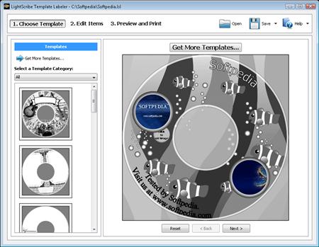 Работа с Template Labeler разбита на 3 этапа: выбор подходящего шаблона, его редактирование, предварительный просмотр и запись. По умолчанию в программе чуть более 10-ка шаблонов для оформления дисков, однако ежели не полениться и загрузить с официального интернет-сайта все имеющиеся там заготовки, то их количество возрастет приблизительно до 100.